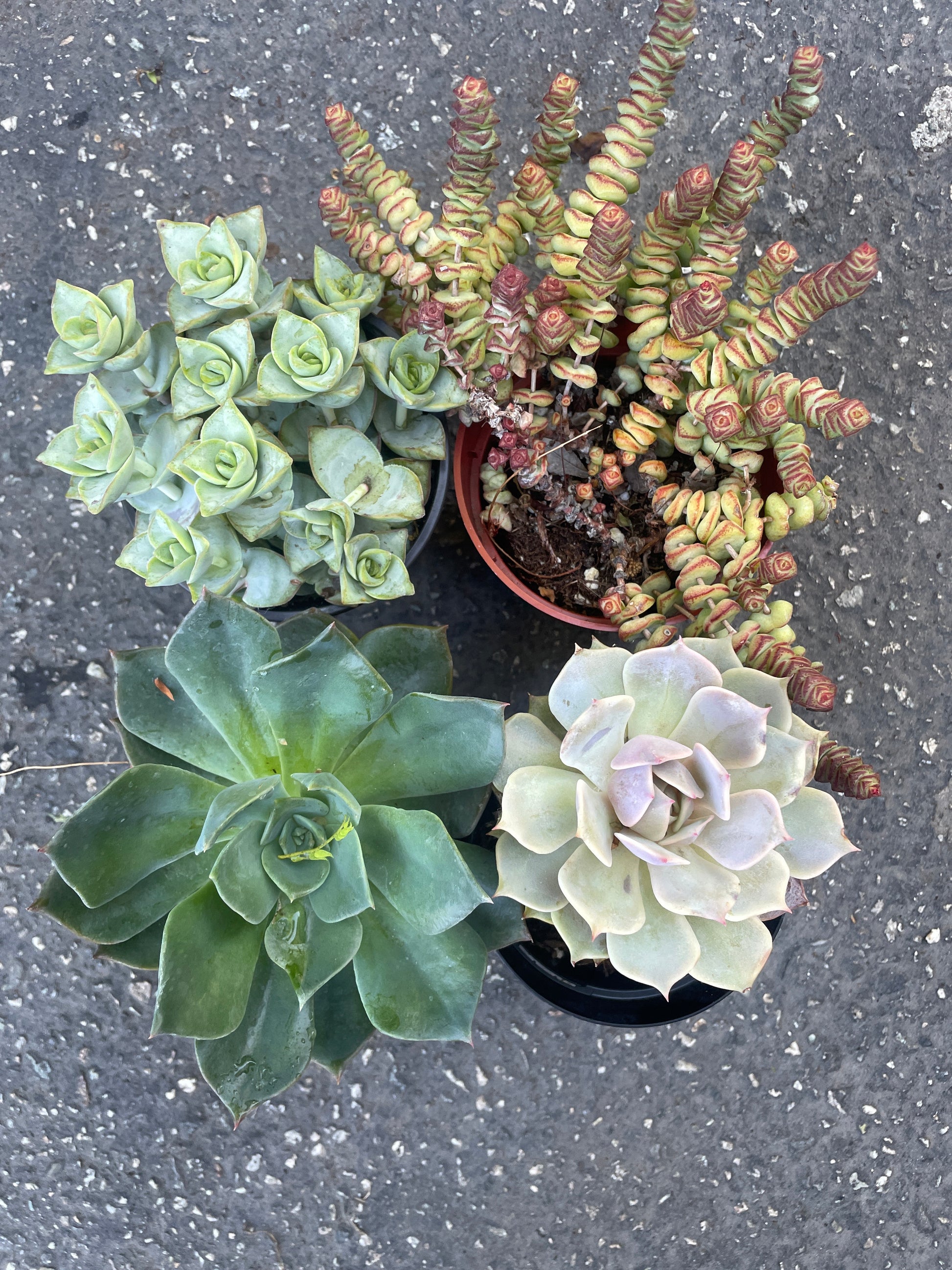 A set of 4 succulents with some imperfections. Succulents vary based on availability